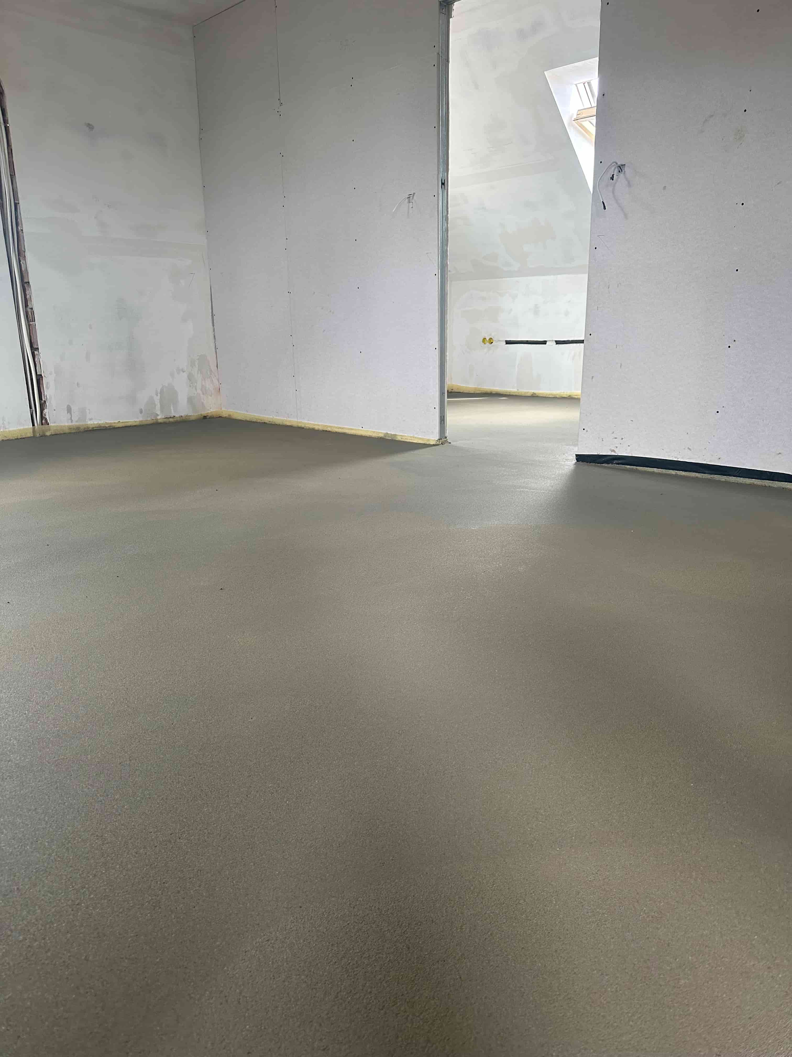 Egy új építésű családi ház teljes belső terében készítettünk esztrich beton aljzatot, összesen 160 m²-en. A padlófűtés fölé került rétegnek nemcsak pontos szintezést, hanem tökéletes simaságot is kellett biztosítania a későbbi burkolatokhoz.