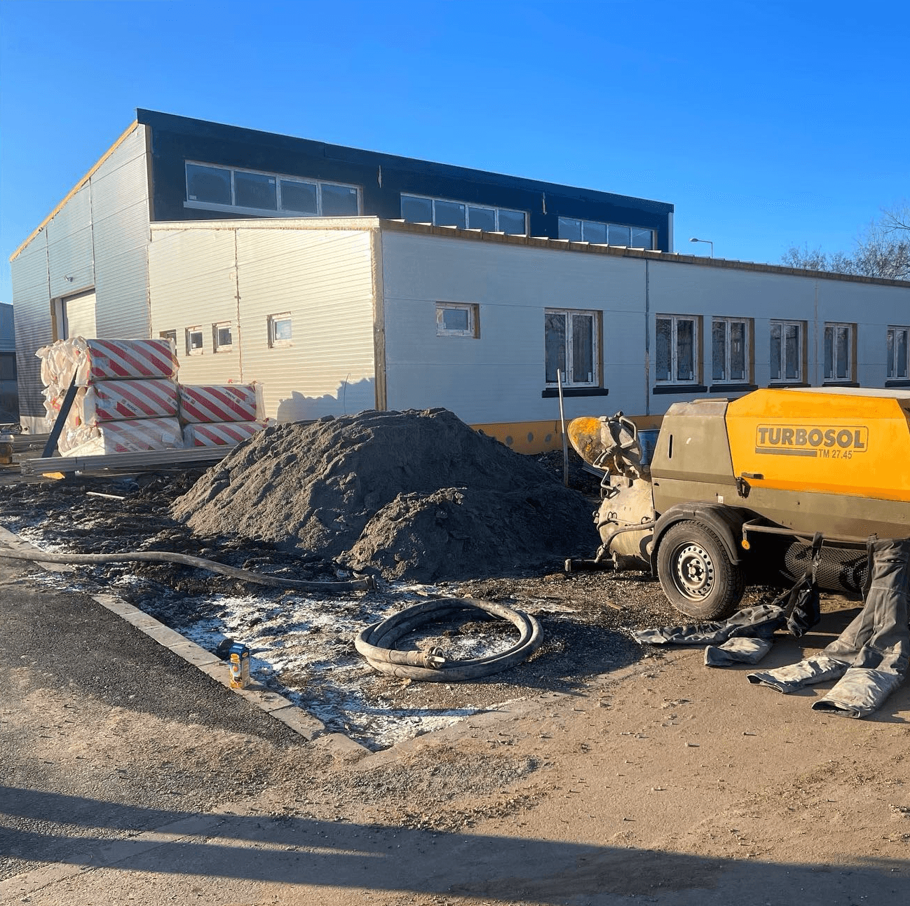 Ez a projekt egy újonnan épült ipari csarnokban készült, ahol közel 2600 m² esztrich beton aljzatot készítettünk el mindössze két nap alatt. A cél egy nagy teherbírású, pormentes és pontosan szintezett padló kialakítása volt, amely hosszú távon is bírja a gépek és raklapok terhelését.